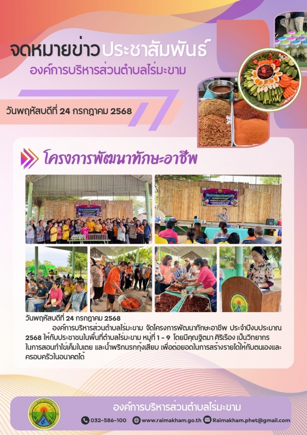 โครงการพัฒนาทักษะอาชีพ ประจำปีงบประมาณ 2568