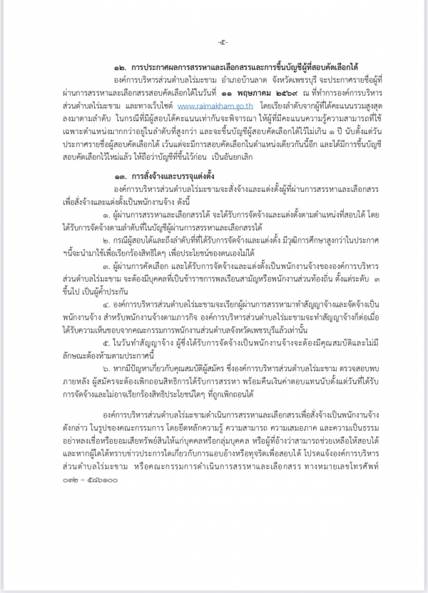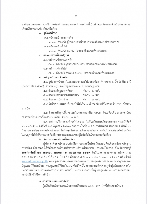ประกาศองค์การบริหารส่วนตำบลไร่มะขาม เรื่อง การรับสมัครบุคคลทั่วไปเพื่อการสรรหาและเลือกสรรเป็นพนักงานจ้าง ประจำปีงบประมาณ พ.ศ. 2569